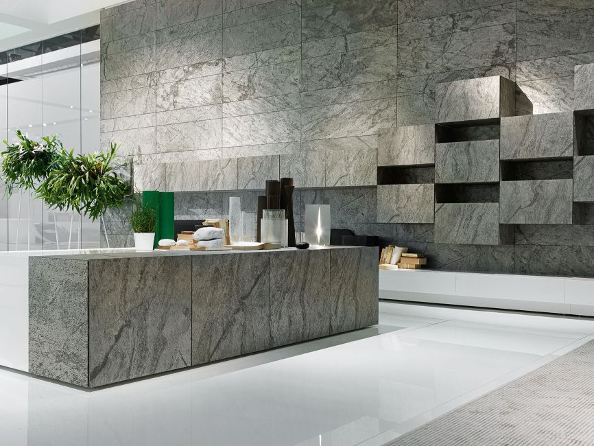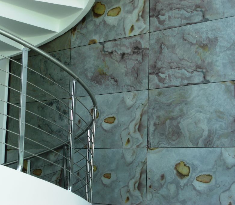 Eco-Core® Natural Stone-Veneer is a natural stone surface obtained from quarries around the world. These light, flexible and ultra-thin sheets of natural stone (slate and quartzite) are split from real slate from various geographical locations resulting in different vibrant colours.